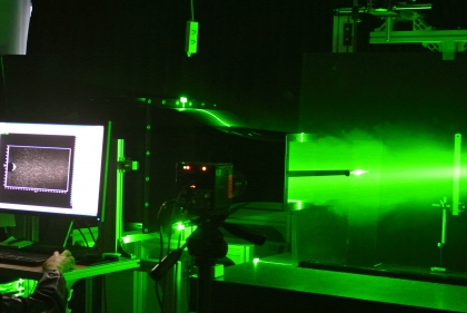 →シャドウグラフ法粒子解析(蛍光パルスレーザー型システム)、ガス可視化 可搬投影型シュリーレン装置、