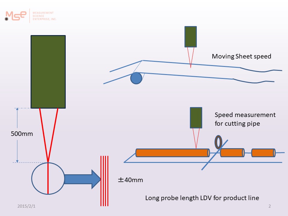 MSE社のLDVは焦点距離500mmで±40mmの長いサンプルボリュームを作ることにより、この問題を解決し、